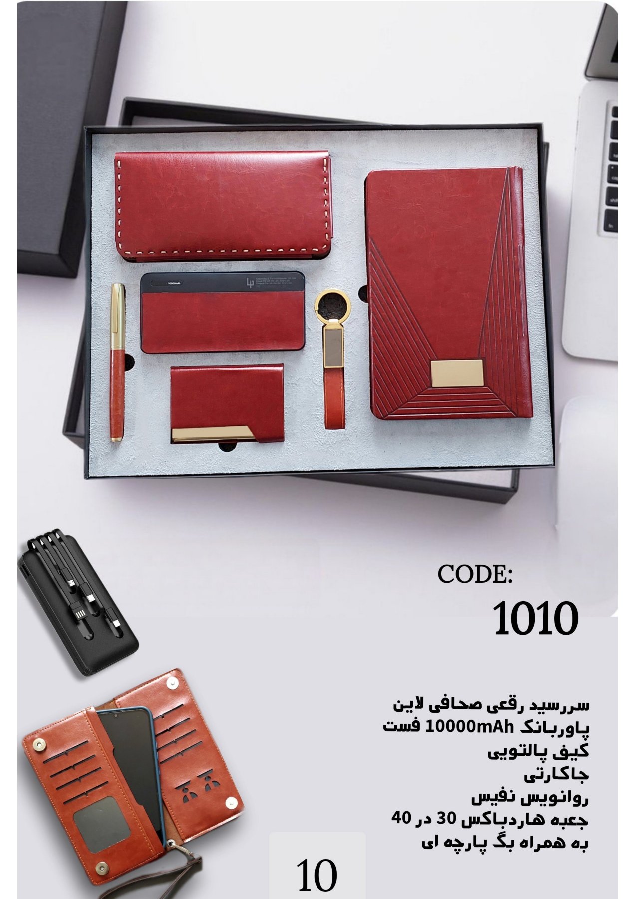 سررسید رقعی صحافی لاین، پاور بانک 10000mAhفست، کیف پالتویی، جاکارتی، روانویس نفیس، جعبه هارد باکس۳۰در۴۰ به همراه بگ پارچه ای